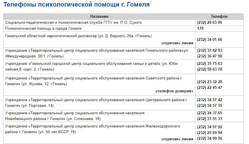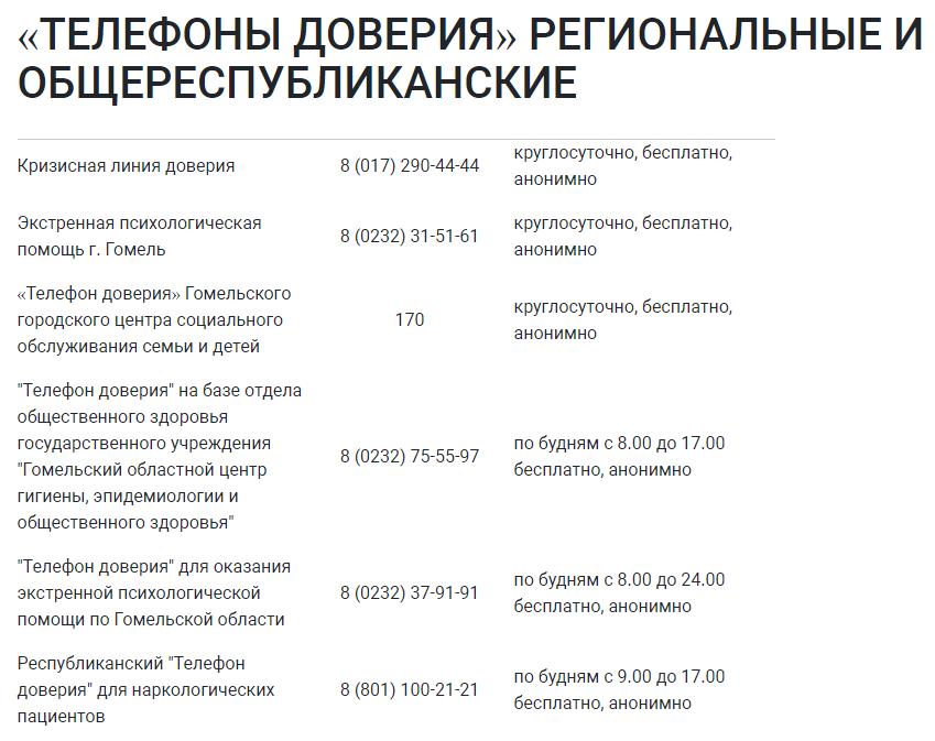 ТЕЛЕФОНЫ ДОВЕРИЯ